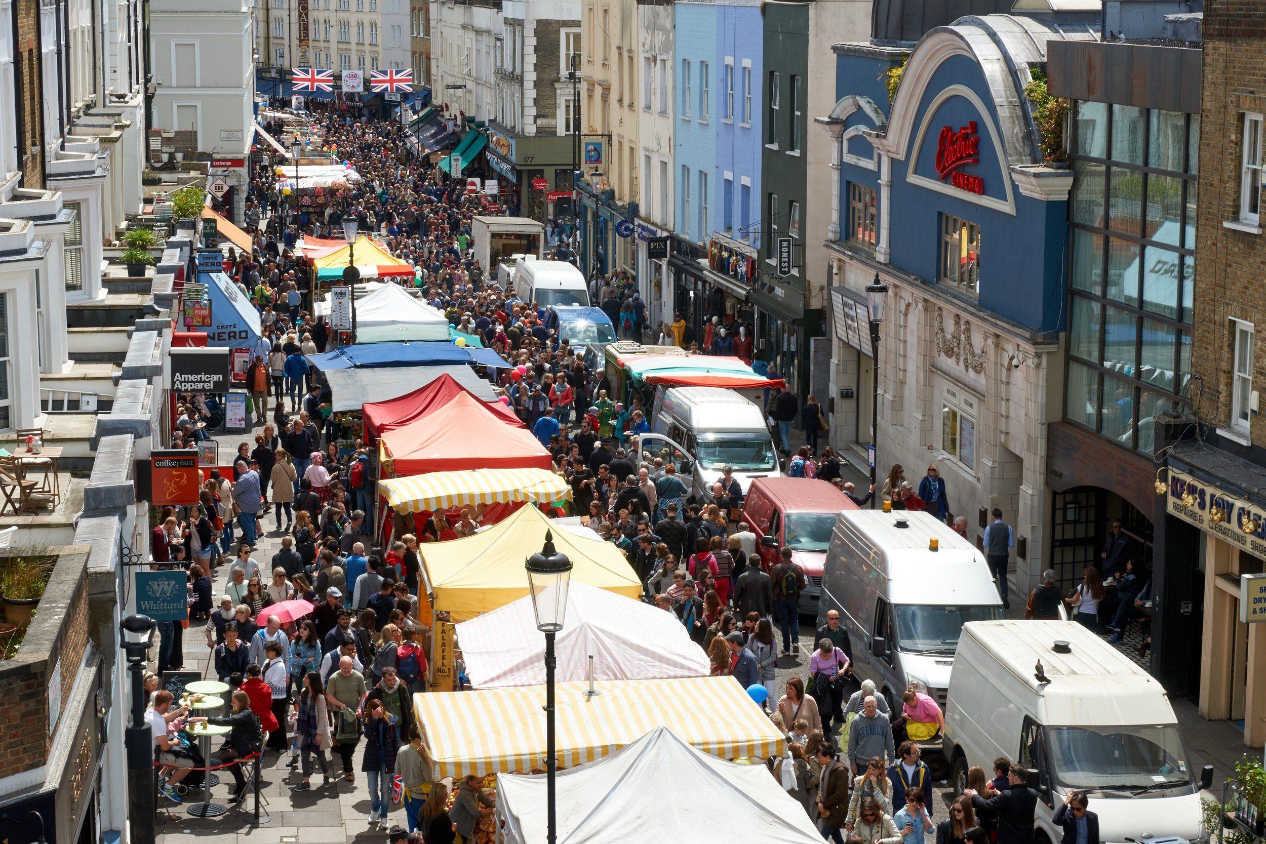A market that needs little to no introduction, Portobello Market is known for being equal parts treasure hunt and anthropology fieldwork. When ambling around, expect to dodge tourists from every direction, haggle over silver and Wedgwood, and suddenly find yourself clutching a 1970s Rolling Stones tee like it’s a family heirloom. The street food is delicious and could potentially score a Michelin star if it wasn't served from under a tent. Come during the week if you prefer a light browse. But if you want to feel the market at its loudest, quirkiest, most unfiltered, Saturday’s the show.